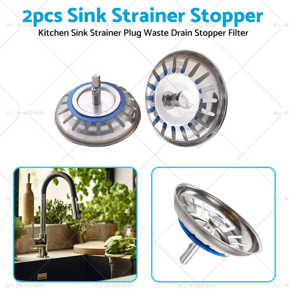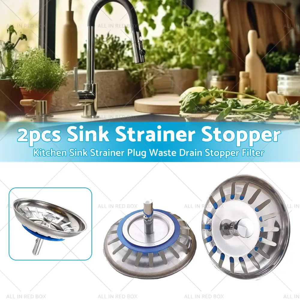 2PCS Kitchen Sink Strainer Plug Waste Drain Stopper Filter Stainless Steel