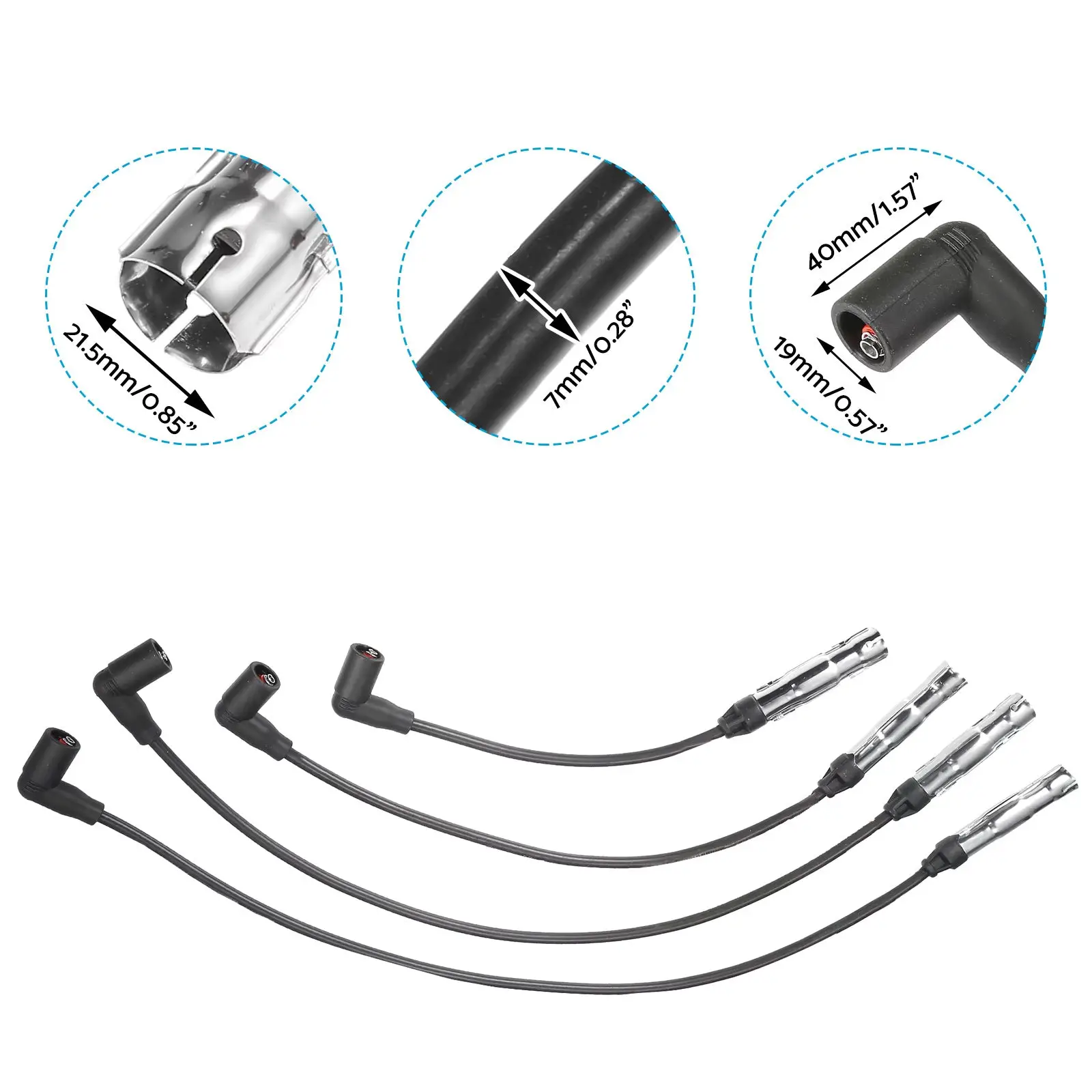 4x 7mm Ignition Spark Plug Wires Suitable For VW Beetle / Golf / Jetta 2.0L L4 1998-2015