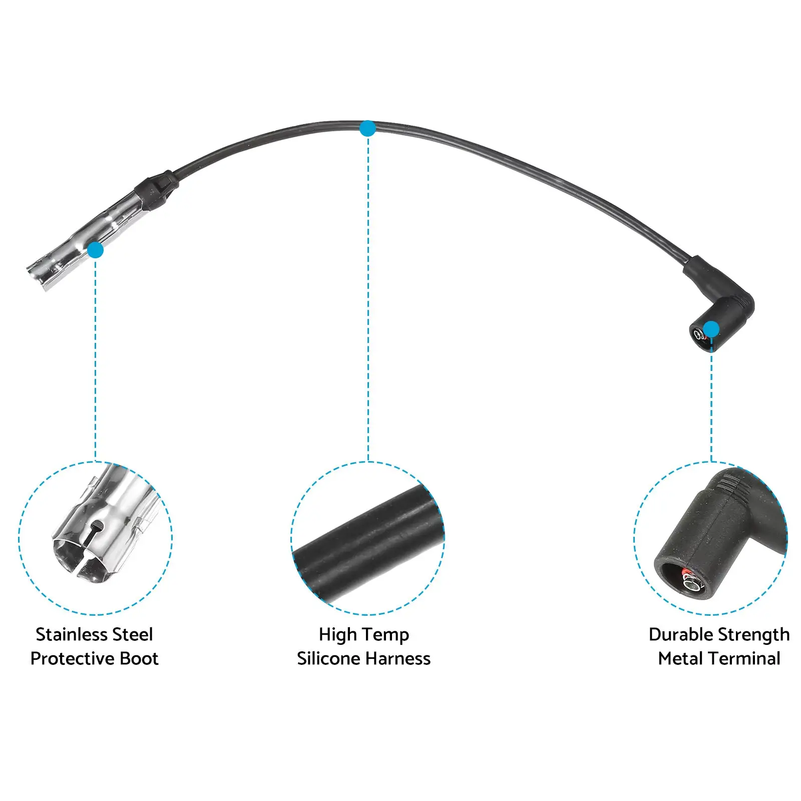This ignition spark plug wire set is designed to deliver reliable ignition performance and ensure smooth engine operation. Crafted from high-quality materials, it offers excellent conductivity and durability for long-term use.
