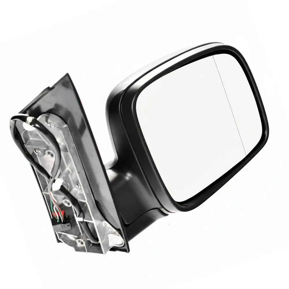 This RH electric door mirror is designed for the Volkswagen Caddy 2K Series models from 2005 to 2020. It includes full mirror assembly with wiring and sockets, offering easy installation and built to match original specifications. Textured black finish and blind spot line included.